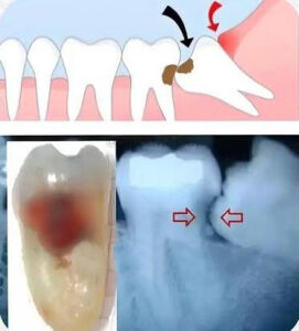 O dente já nasceu completamente, mas pode causar dor, inflamação ou dificuldade de higiene.