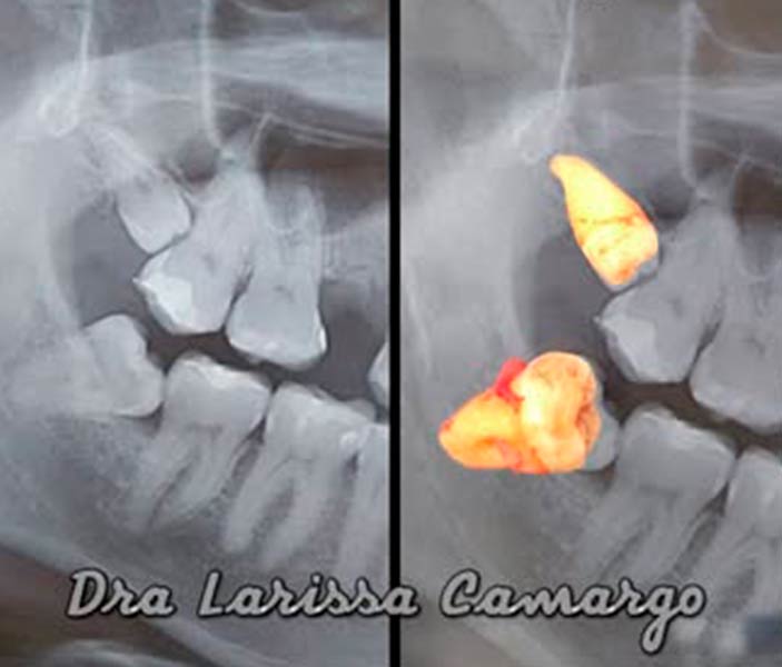 Casos inclusos ou impactados podem exigir abordagem cirúrgica mais cuidadosa. Indicado um profissional habilitado.